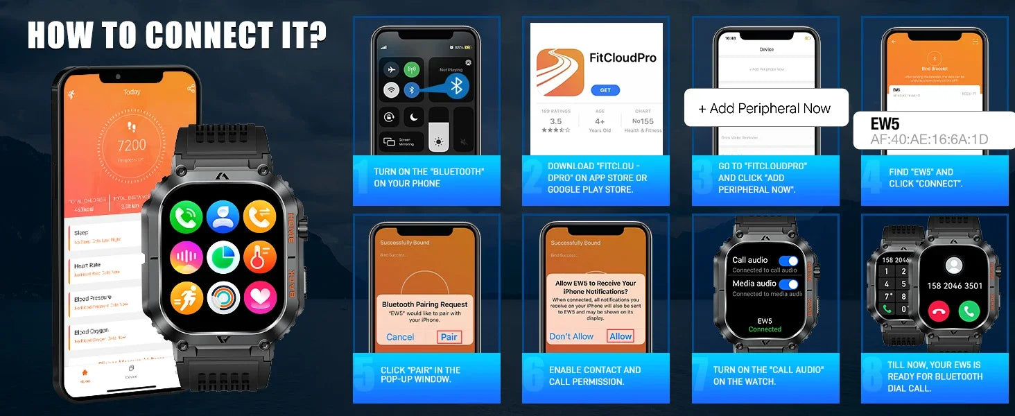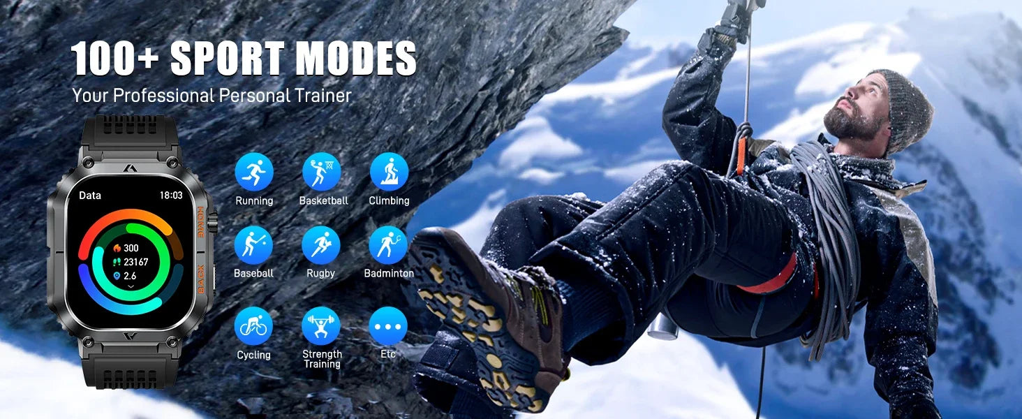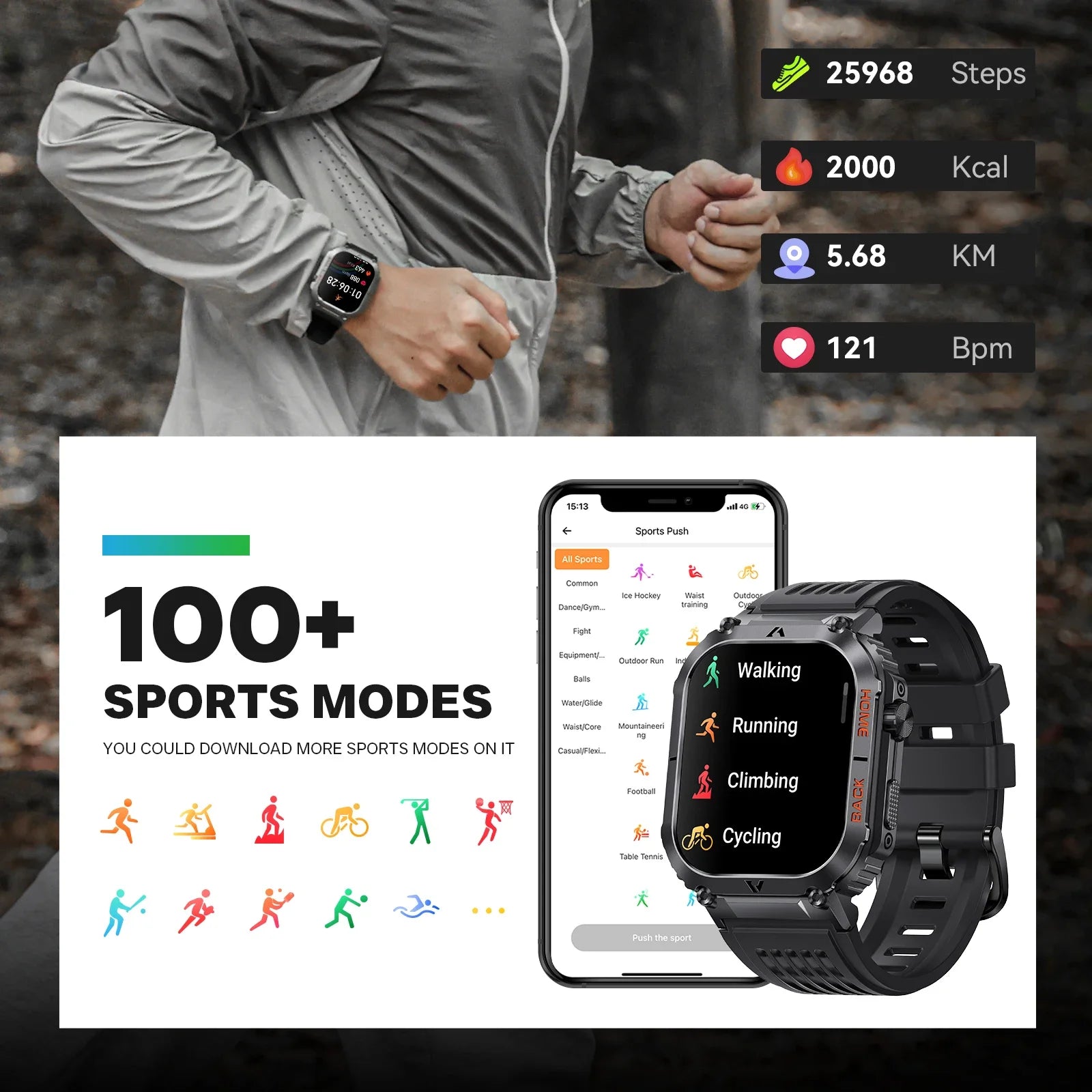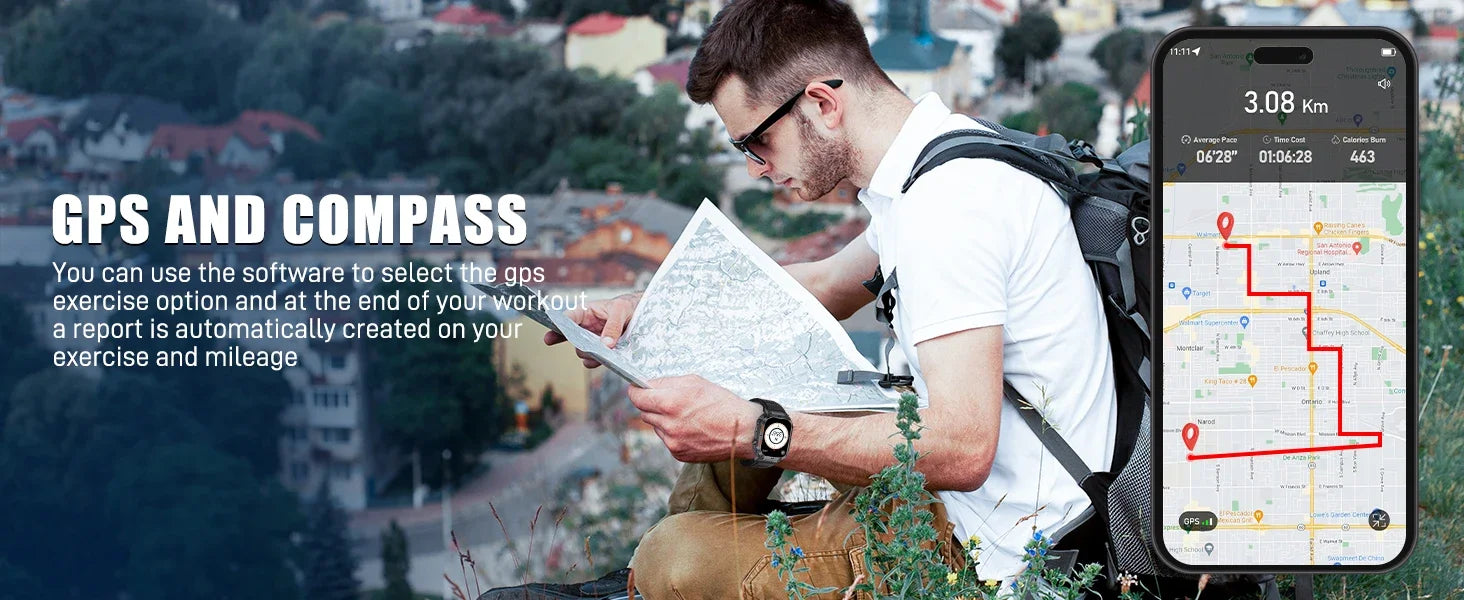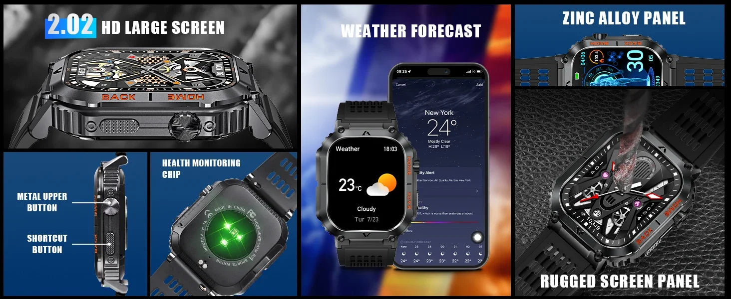 EIGIIS nouveaux hommes montre 5ATM étanche fréquence cardiaque pression artérielle moniteur d'oxymétrie 2.02 ''TFT HD avec boussole 100 + Mode sport EW5