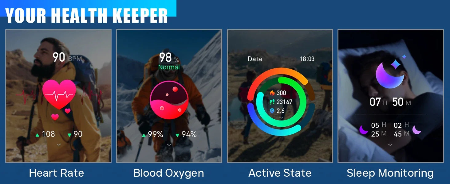 Métriques mesurées: Moniteur de fréquence cardiaque,Moniteur d'oxygène dans le sang,Moniteur de sommeil,Moniteur de pression artérielle