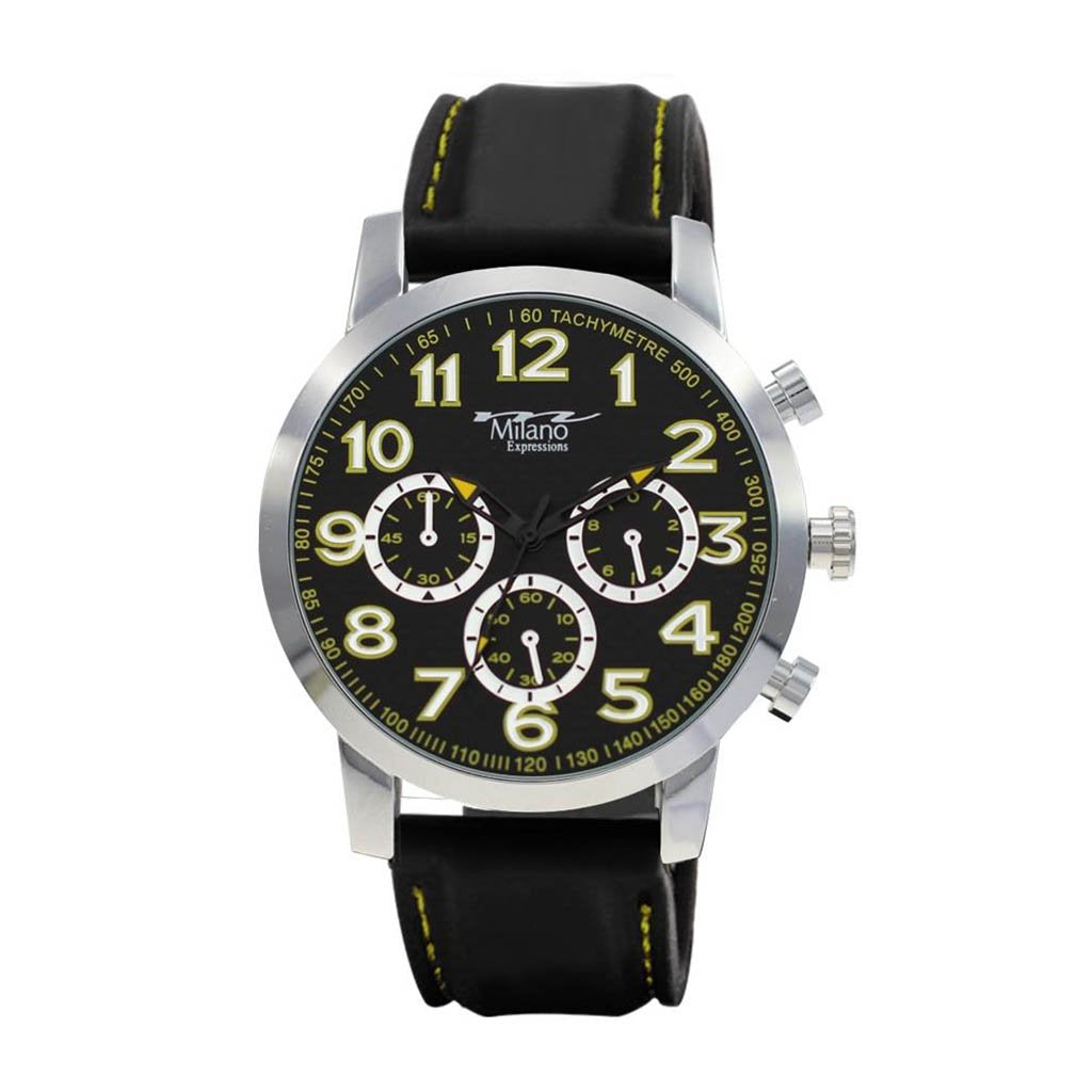 M Milano Expressions Black Rubber Strap Watch with Black Case and Black Dial